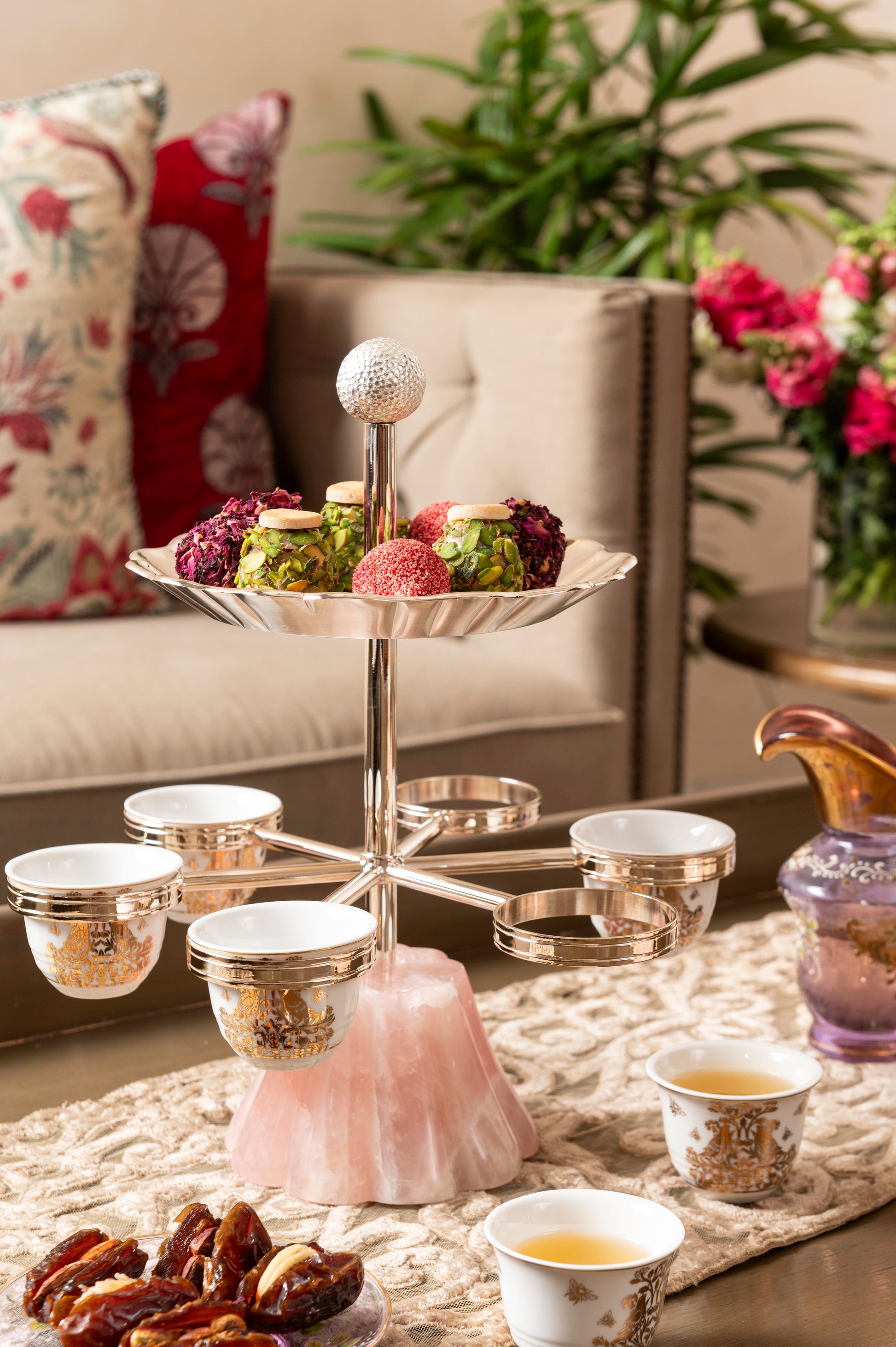 Make a spectacular statement with this elegant coffee cup holder. It makes a decadent piece for completing your tablescapes in style. Pair it with matching pieces from our collections and create a dreamy setting in any home. Comes complete with 6 porcelain cups.