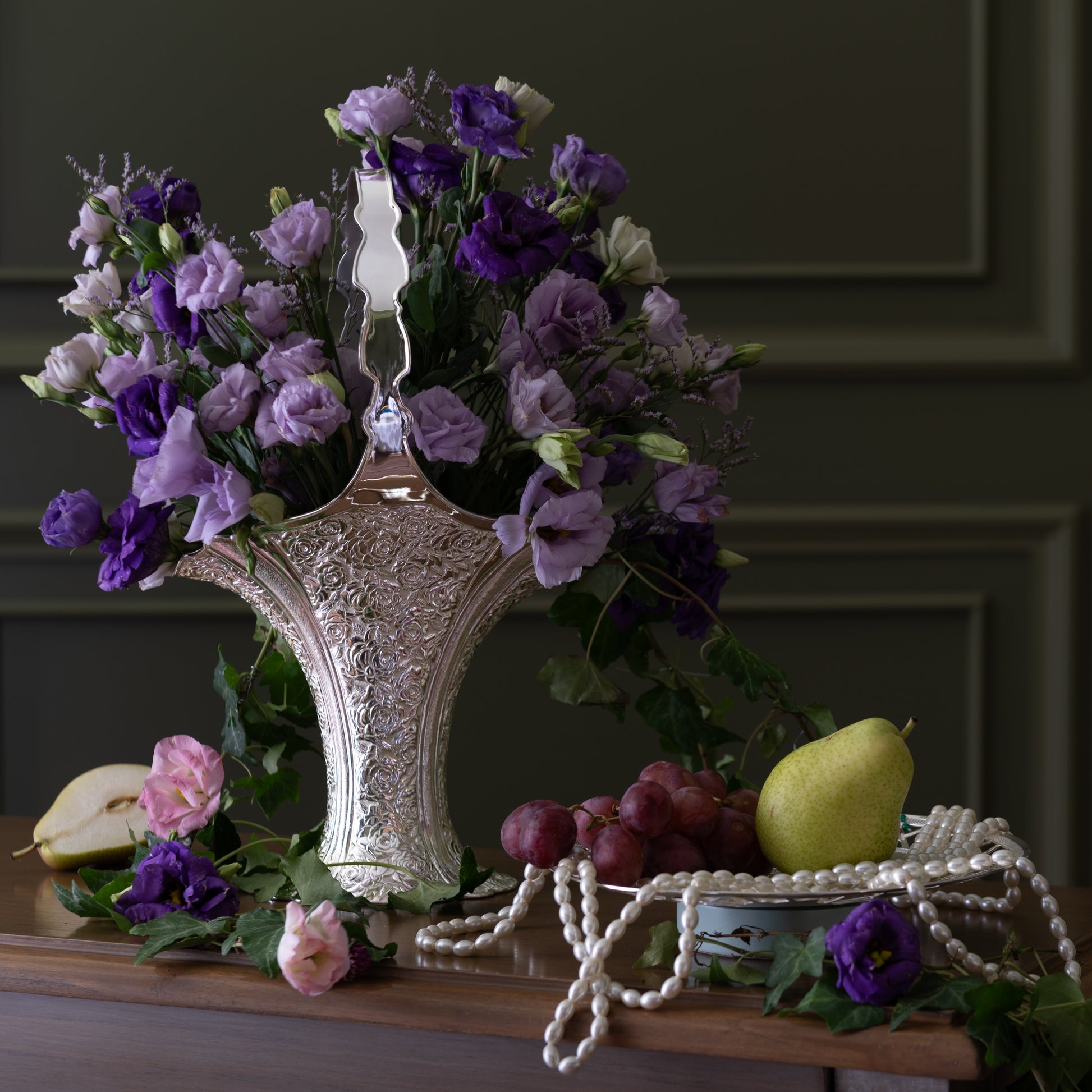 This pretty victorian style vase carved with delicate flowers on both sides, can be used as a flower holder or just a show piece in itself made with utmost detail, this vase would make a whimsical addition to any home.
