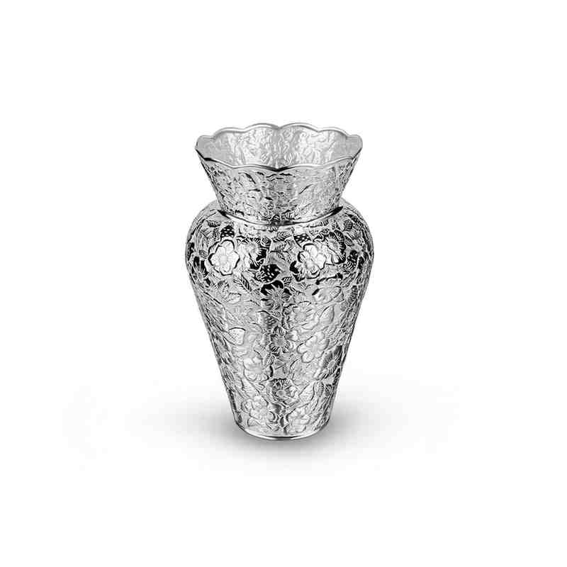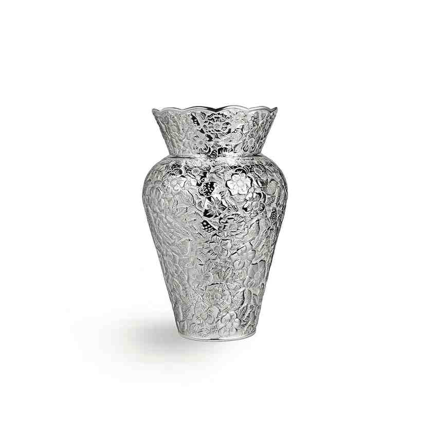 Decorated with intricate birds , this silver vase showcases the labels expertise and artistry , and is sure to brighten your space with exquisite elegance.