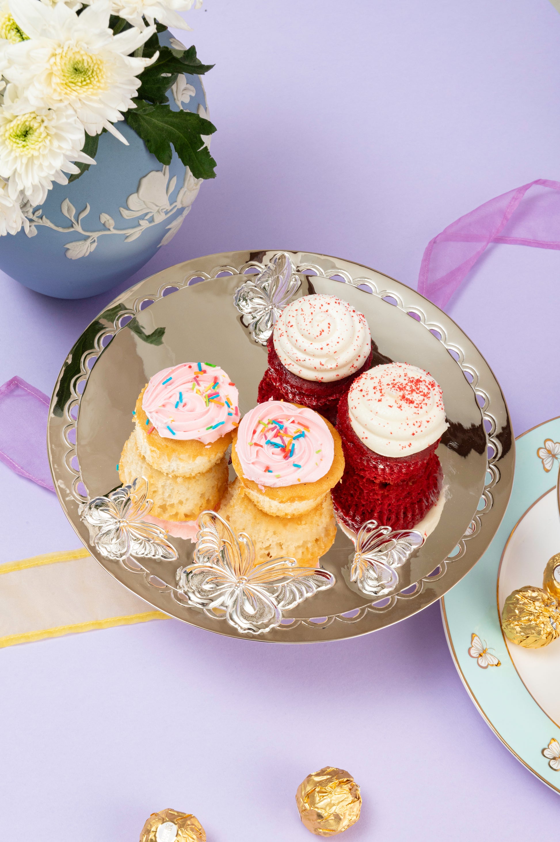 This is what dreams are made of. Embossed with whimsical butterflies, and delicate lace and scallop pattern, This piece is perfect for announcing the arrival of your little one. It has a ribbed wooden base, the color of which can be customised for bulk orders.