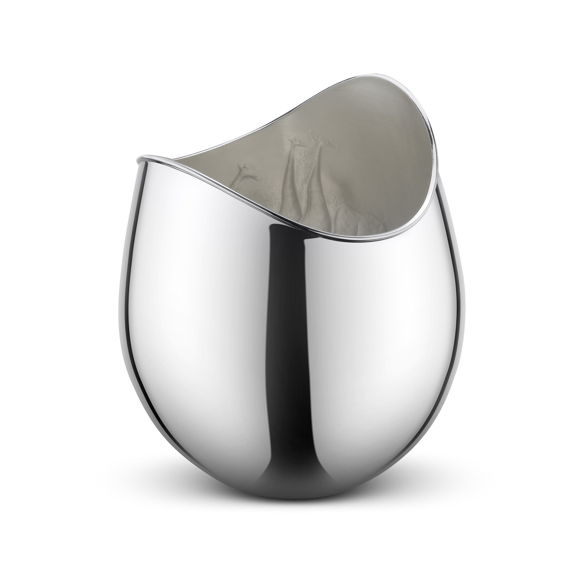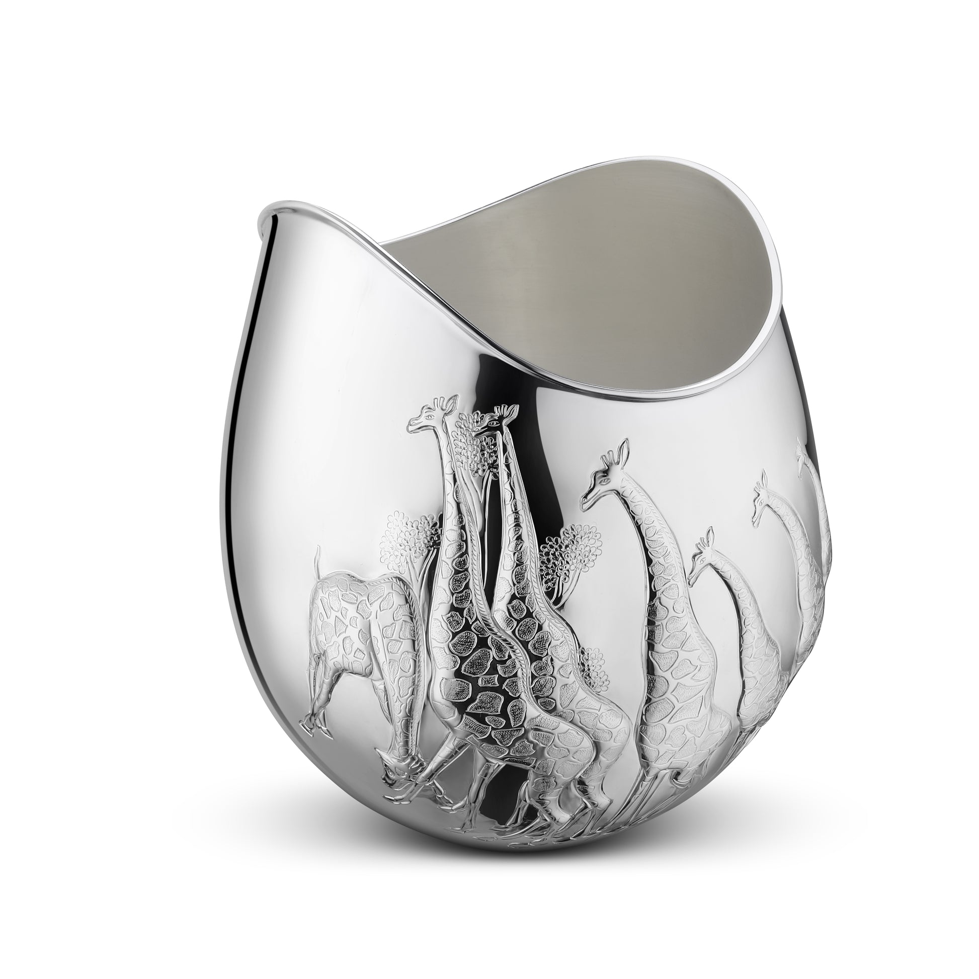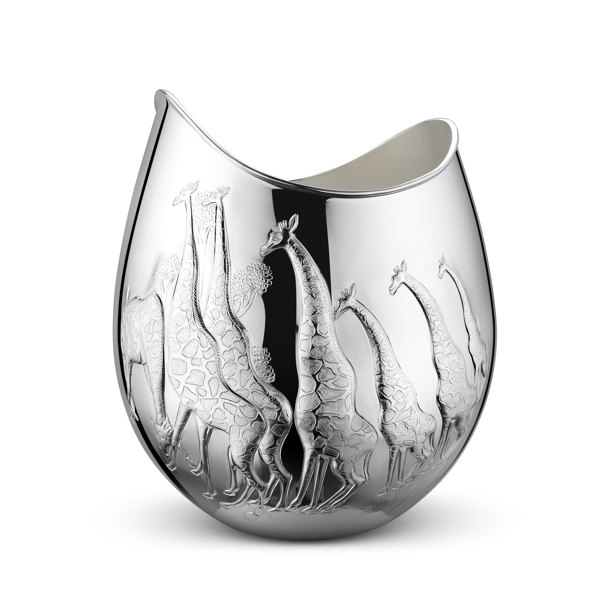- A silver-plated bulb vase wrapped in embossed giraffe silhouettes for a playful, artistic look.