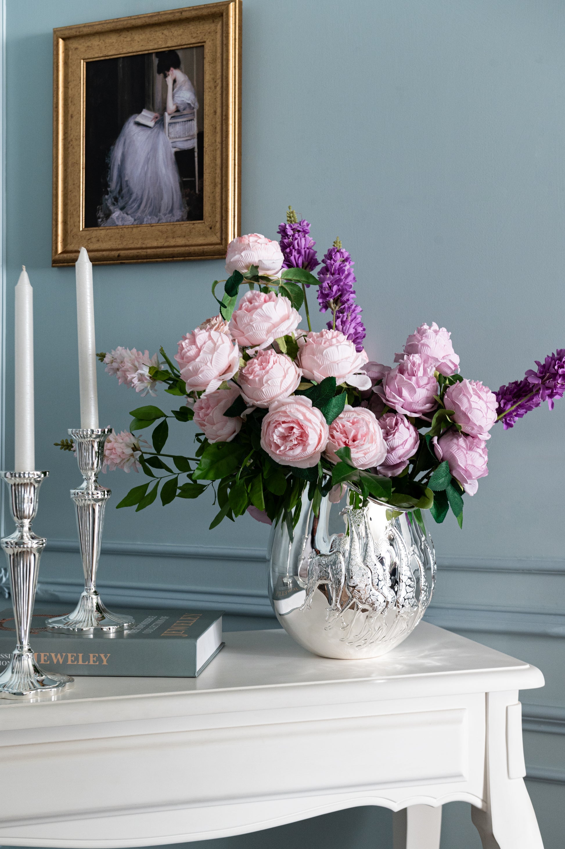- The wide mouth and generous interior easily hold a lush bouquet or mixed blooms.