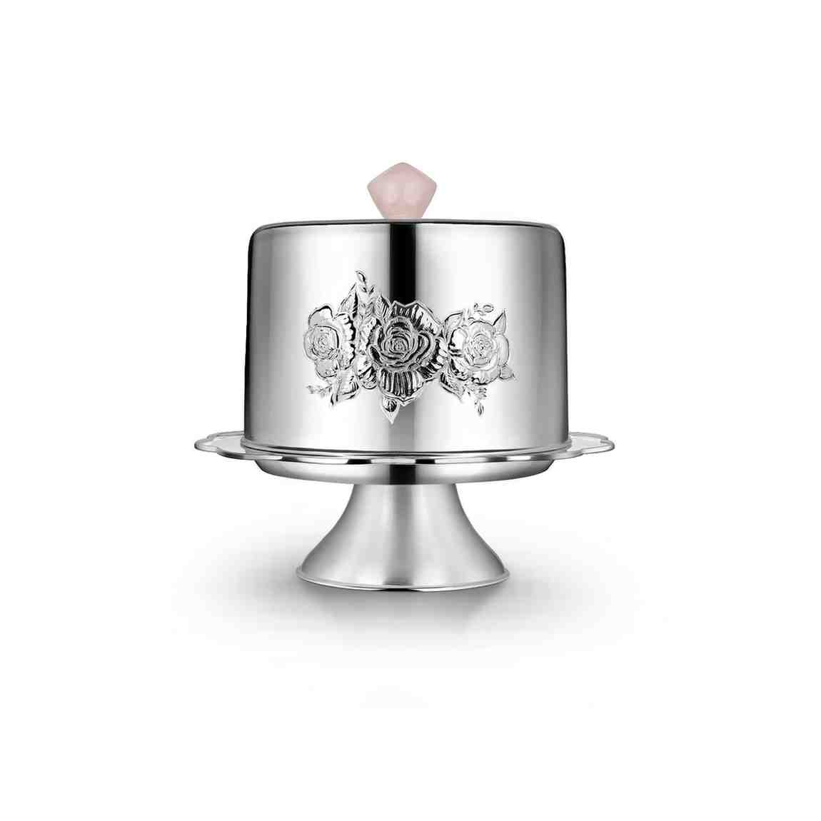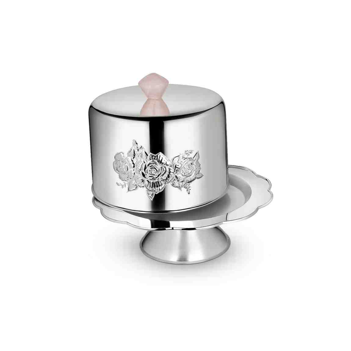 Our rose embellished cake stand handcrafted by a team of master craftsmen , is ideal for spectacular dessert presentation. The dome preserves freshness, and is adorned with a rise quartz knob which adds beauty and functionality for easy lifting.