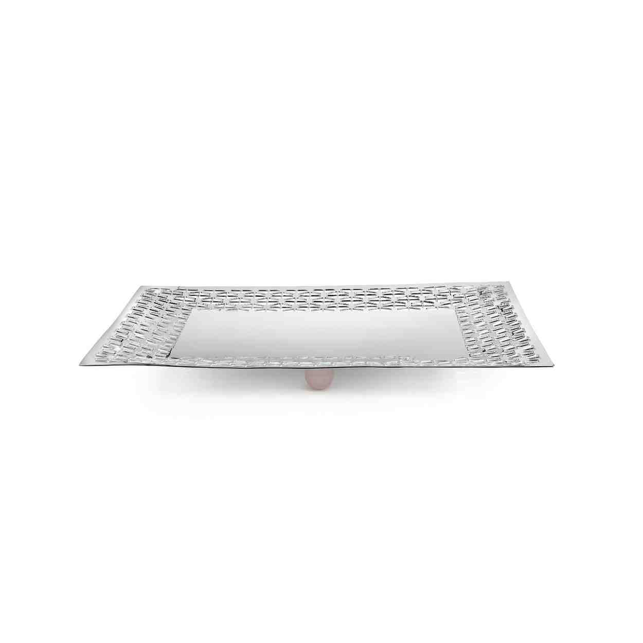 This rectangular platter with a perfectly cut lattice patter on the border is great to send your festive giveaways in style. The rose quartz stones at the base lends an elegant look to this piece.
