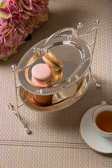 This two tier stand inspired by the founders travels to Italy, features two high polished plates with beaded detailing on the border. It is ideal for a lovely tea party by the garden or as a part of your everyday morning tea/ coffee rituals.