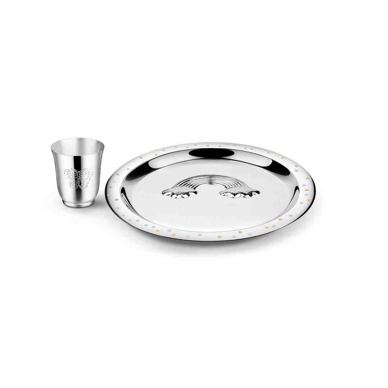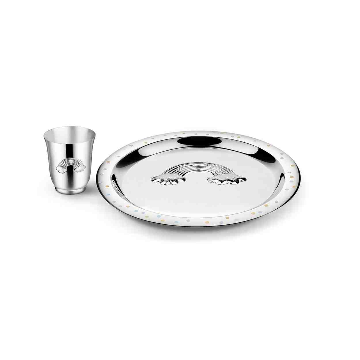 Make mealtimes fun for little ones with this adorable dinner plate and glass which feature a cute rainbow and colourful dots on the border which make for a great gift for all newborns and toddlers and is guaranteed to make them smile.
