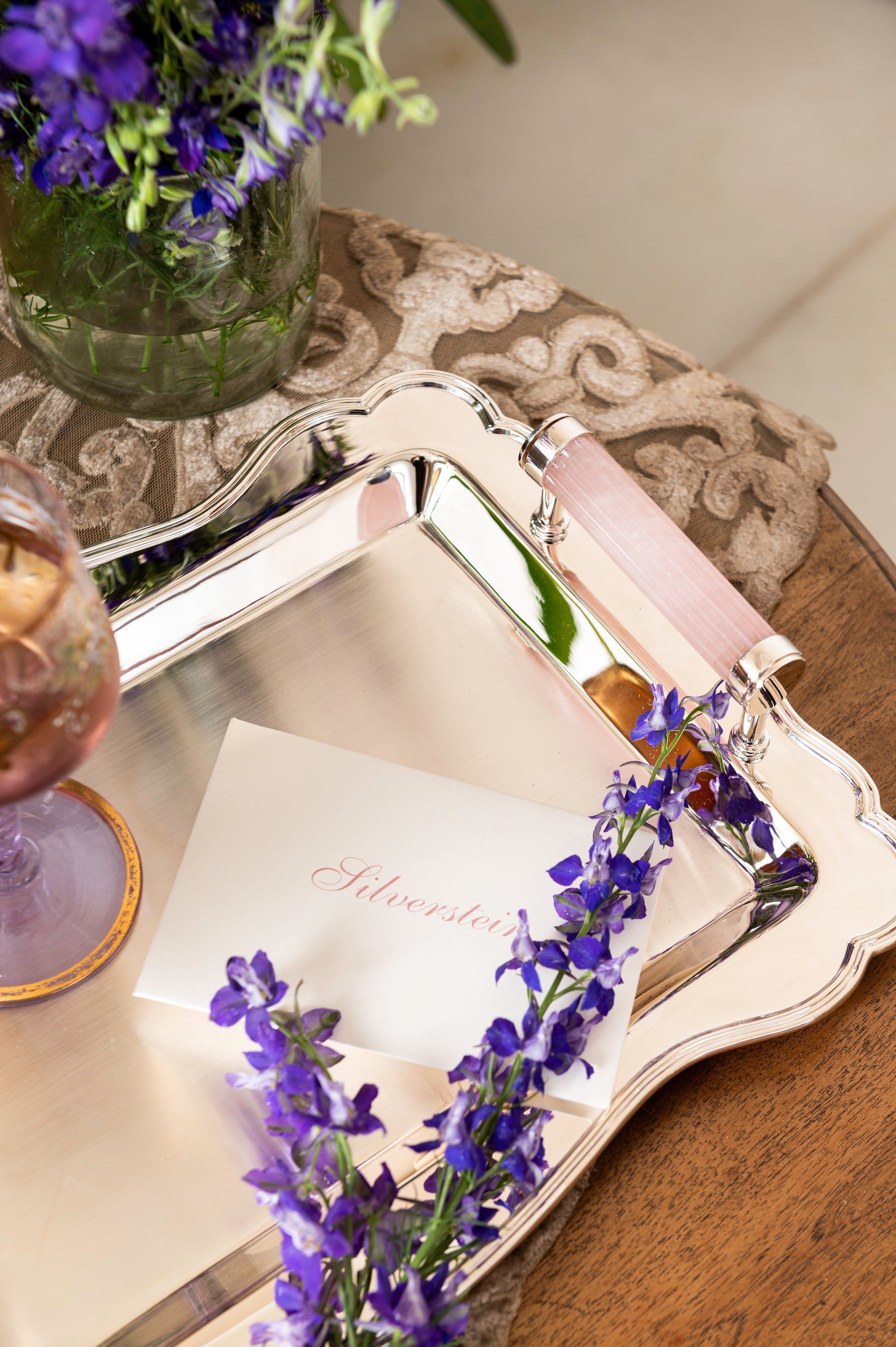 With exquisite rose quartz handles, For effortless serving, This tray is suitable for both temporary and contemporary aesthetics. It is perfect for serving aperitifs to guests at your evening soirées.