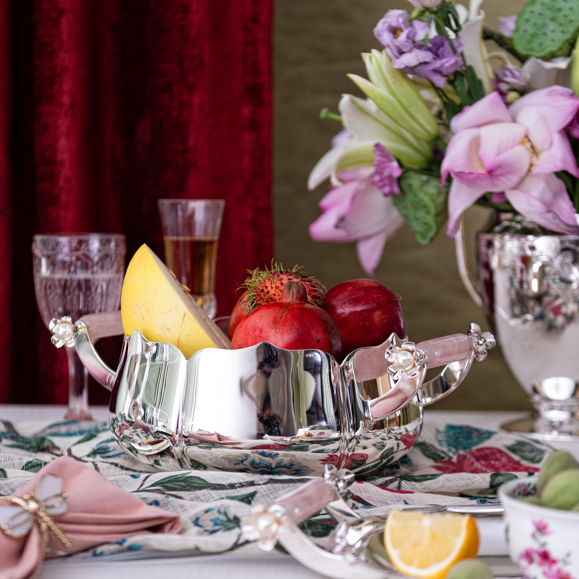 This piece adds a touch of undeniable refinement to any table setting, with its ornate pearl and rose quartz handles, it is sure to add beauty and grace to your meals.