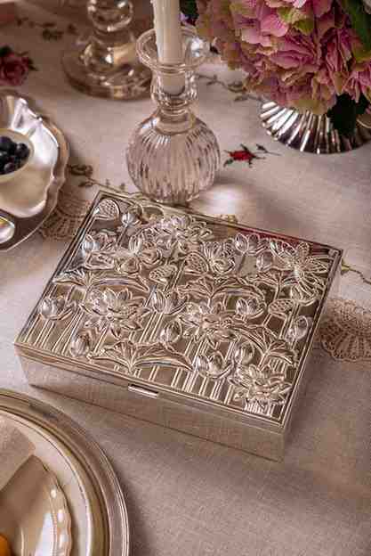 This handcrafted box is adorned with the signature butterfly motif, and serves as the ideal resting place for your nuts m chocolates or trinkets. It comes with an acrylic partition divider, with three sections to keep the contents neat.