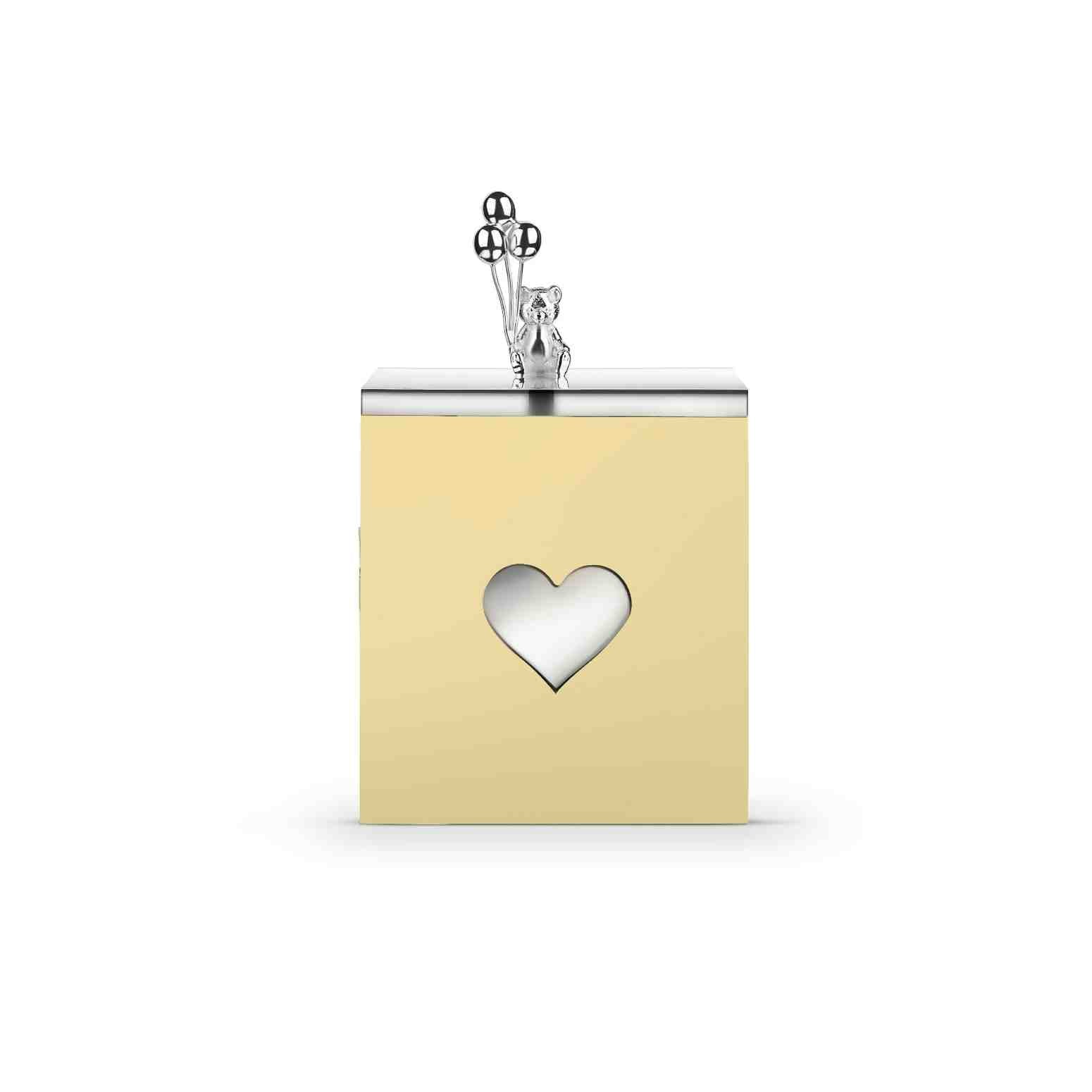Offering a cute storage solution for tiny treasures, this box is the perfect home for beloved keepsakes. The wooden base decorated with hearts and stars and the lid with a teddy bear holding balloons makes for an ideal gift.