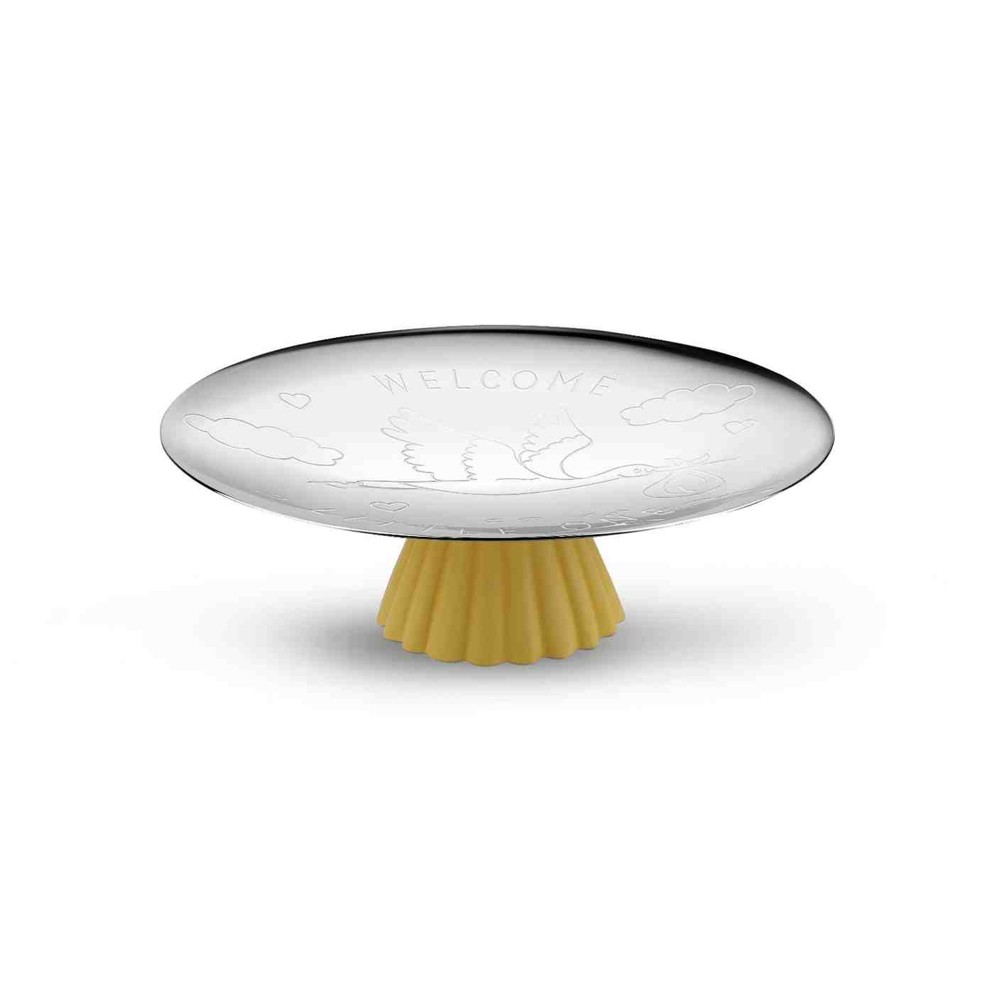 Fill this pretty platter with special treats to welcome your new bundle of joy. This platter is decorated with a cute baby centric design and has a pretty pastel wooden base.